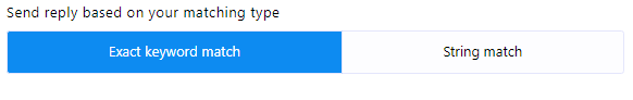 2. Matching Type: You can choose the matching type by clicking on one of the two buttons provided: `Exact Keyboard Match` or `String Match`. By default, `Exact Keyboard Match` is selected. With this option, the bot will trigger only if the user`s input matches the keyword exactly. In contrast, with `String Match`, the bot will trigger if the user`s input partially matches the keyword.