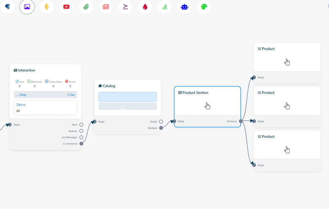 If you want to add `E-commerce` you must need an `Interactive` and then you can add you E-commerce to the Bot Flow.)