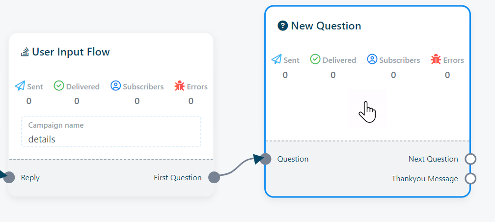 You may easily include your User Input Flow campaign into the flow of your other bot after it is set up. When a user encounters the User Input Flow component in your bot`s flow, they will be prompted with the questions defined in your campaign. Their responses will be automatically recorded in the specified custom fields.