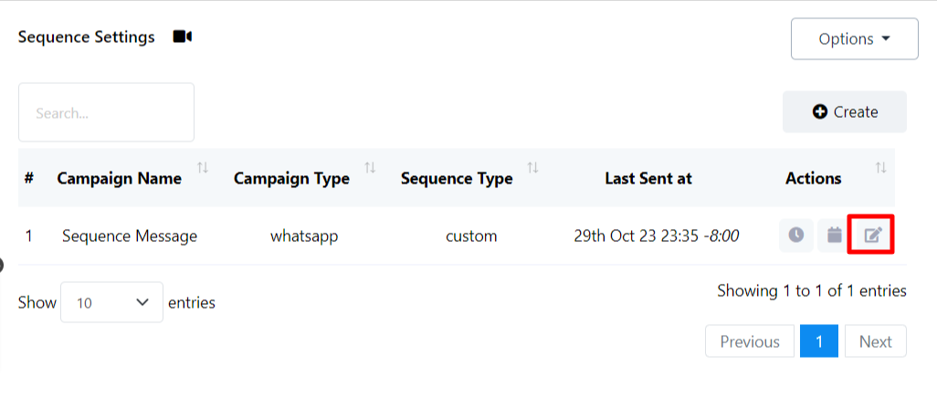 Edit Your Existing Sequence Messages: Just click on the Edit button under the actions to edit a sequence message campaign.
